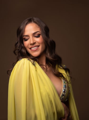 Es muy importante para el look final que las cejas también bien marcadas, definidas... Todo eso tiene que ver con los estereotipos de belleza de acá, obvio. Y cuando nos vinimos a vivir a Dubái, nosotras también nos fuimos adaptando poco a poco a ese estilo. Al final, terminás amando esa intensidad porque resalta muchísimo los rasgos y hace que el baile brille todavía más bajo las luces del escenario.